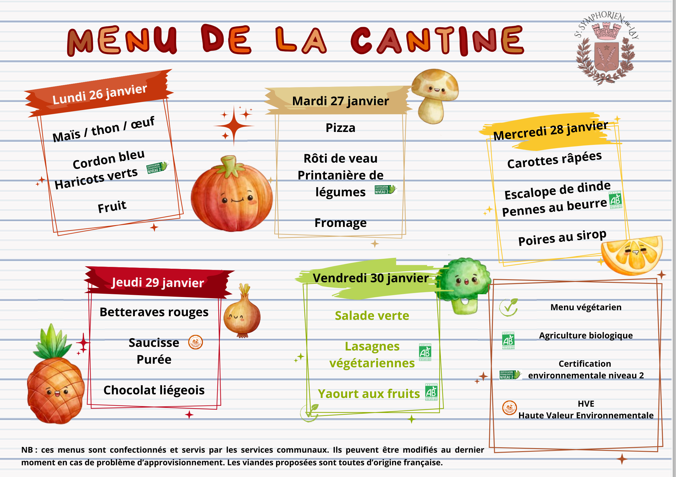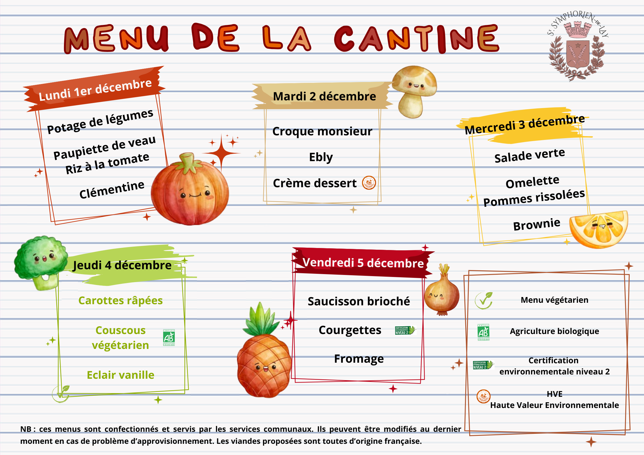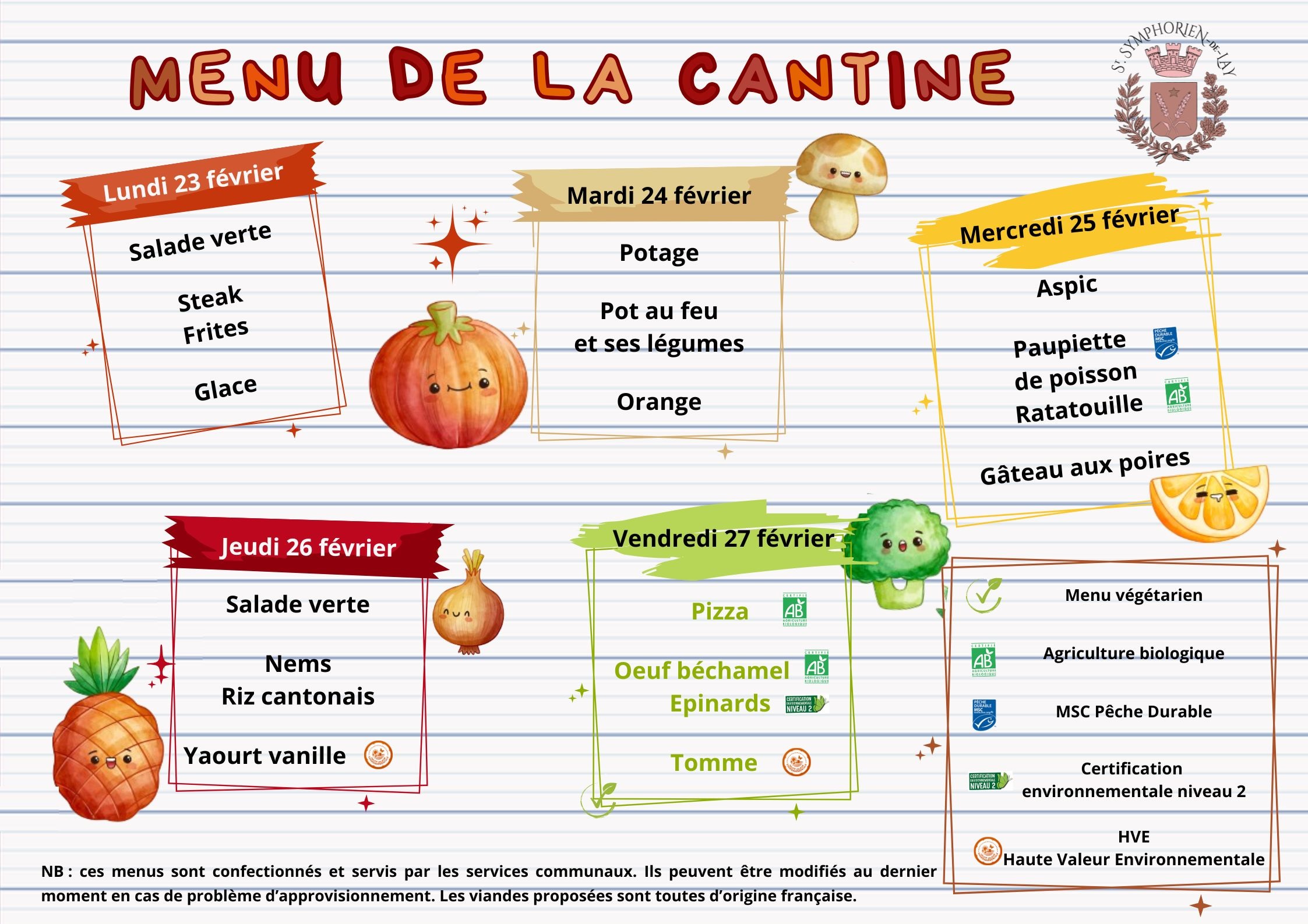 Cuisinier : Denis SALAZARD qui confectionne ses menus avec des produits locaux Provenance de la viande servie au Restaurant Scolaire Son équipe : Christine DUTEL, Sabine THEVENET, Maryline DADOLLE, Nadège TINARD, Pascal BURNER, Marie BRESSON